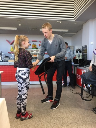 Iivo Niskanen jakoi palkinnot ja iski kovasti juttua tytttöjen kanssa.